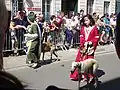 Au cours du défilé qui a lieu l'après-midi à travers la ville, des organisations de natures très diverses défilent, chacun arborant son costume de cérémonie : par exemple, parmi le groupe des universitaires, « les historiens défilent en toge jaune, les juristes en toge rouge »[18].