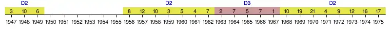 | 1956 | 2e Zone 2 | 8e | 38 | 34 | 13 | 12 | 9 | 50 | 49 | +1 | — |