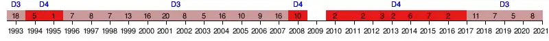 | 1995 | 1er | 111 | 44 | 36 | 3 | 5 | 84 | 19 | +65 | ||