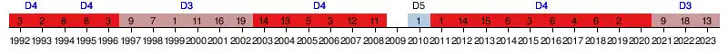 | 2006 | 3e | 63 | 30 | 20 | 3 | 7 | 67 | 41 | +26 | ||