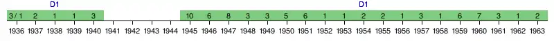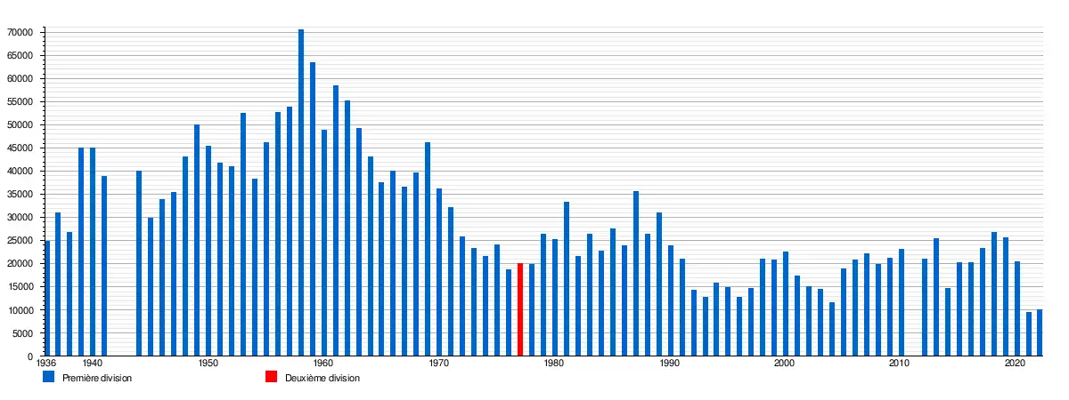 1945-1976 : Une domination nationale inconstante et relégation en deuxième division