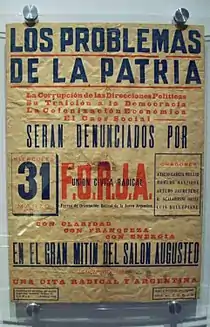 D’autre part, l’association politique La Baldrich se réclame des idées forjistes[6]. Dans la ville de Rosario existe une Agrupación Forja, organisation étudiante de l’université nationale de Rosario.