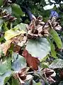 Elles sont enfermées par deux, parfois trois ou quatre, dans une cupule ligneuse hérissée d'épines recourbées molles, issue de la condensation de l'involucre floral, parfois appelée autrefois « brou ». Celle-ci s'ouvre par quatre fentes (parfois 3) pour former autant de valves.