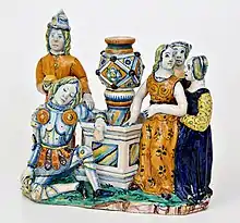 La faïence est l'une des plus communes et des plus anciennes techniques utilisées en céramique. La découverte de la faïence au IXe siècle et sa diffusion en Occident à la Renaissance représentèrent une avancée technique majeure : pour la première fois, le potier s'affranchissait des décors cloisonnés ou incisés pour délimiter les couleurs. Surtout, il pouvait utiliser le fond blanc pour exécuter une véritable peinture[2] et reproduire des décors élaborés, susceptibles d'être inspirés par de grands artistes. Sur la glaçure blanche et poreuse, les couleurs pouvaient être posées au pinceau, sans risque de s'épancher sur le vernis. Elles ressortaient vivement, ce qui n'était pas possible avec le seul fond foncé de l'argile.