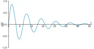 Ainsi, si , l’espace des solutions de l’équation homogène est de la forme , ce qui correspond à un régime apériodique. Si , le régime transitoire est dit critique, les solutions appartiennent à l’ensemble . Enfin, si , le régime transitoire est pseudopériodique, et les fonctions solutions de l’équation homogène se trouvent dans . Les constantes , , et sont des durées d’amortissement, et une pulsation, qui dépendent exclusivement de et .