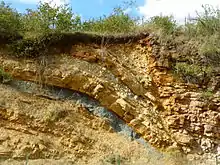 - Escarpement de faille : talus entre les deux blocs, donné par le jeu de la faille[note 2]