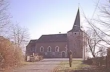 Jadis, il y a près de 1 000 ans, s'élevait une chapelle romane avec une tour assez large bien caractéristique du type tour barlongue comme celles qu'on peut encore voir à Aineffe.
