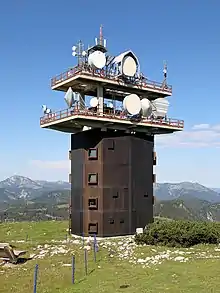 Cette image de la tour hertzienne du Crêt de la Murette (Rhône) montre l'espace libre nécessaire à la propagation de ondes hertziennes.