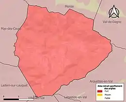 Le retrait-gonflement des sols argileux est susceptible d'engendrer des dommages importants aux bâtiments en cas d’alternance de périodes de sécheresse et de pluie. La totalité de la commune est en aléa moyen ou fort (75,2 % au niveau départemental et 48,5 % au niveau national). Sur les 38 bâtiments dénombrés sur la commune en 2019, 38 sont en aléa moyen ou fort, soit 100 %, à comparer aux 94 % au niveau départemental et 54 % au niveau national. Une cartographie de l'exposition du territoire national au retrait gonflement des sols argileux est disponible sur le site du BRGM[24],[Carte 3].