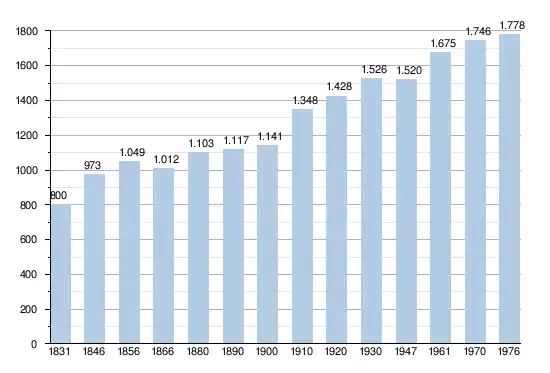 - Sources : INS, Rem. : 1831 jusqu'en 1970 = recensements, 1976 = nombre d'habitants au 31 décembre[4].