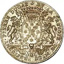 - III - Pierre Dugas, né en 1551, notaire et juge au château de Thurins, dont sa veuve Aymée Dallier et son fils Louis donnent le dénombrement de leurs possessions. Le roi Henri III lui aurait donné en 1589 des lettres lui enjoignant de tenir le pays de Thurins et ses environs dans l'obéissance contre les entreprises du duc de Nemours : Charles-Emmanuel de Savoie-Nemours[4]. Il aurait eu pour épouse Jeanne de La Tour des Champs[Note 1] de cette union naquirent: