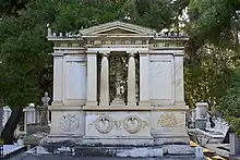 Vue du monument funéraire familial des Mavromichalis, au sein du premier cimetière d'Athènes.