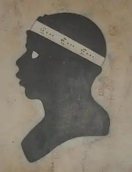 | Blasonnement | D'argent à la tête de maure entortillée du champ, la bande chargée de trois taus de sable |