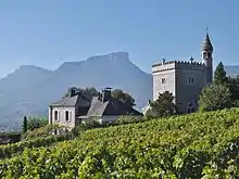 - Tours de Chignin (Chignin, Savoie), La Biguerne ou Clos Saint-Anthelme acquise par mariage en 1753 et La tour Corraz (1738 ?)[16]