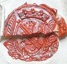 - Nicod de Menthon-Montrottier (c.1400-1405- av.1473/5), fils du précédent, seigneur de Montrottier, gouverneur de Nice (1440-1449), puis ambassadeur de Savoie à Naples, à Paris et à Londres[40]. En 1436, il est chargé du commandement d'une flottille, recevant pour l'occasion un étendard aux armes de l'Église ainsi que le bâton d'amiral, par les « Pères de Bâle », réunis sous la présidence du cardinal Julien[41]. Il participe avec son père à un attentat contre Jean (Jehan) de Compey[40],[42].