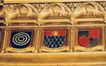 Armes Monteynard, salle des croisades - Lantelme Aynard I, seigneur de Monteynard, de They, de Domène, de La Pierre (vers 1170), participe avec ses frères, ses fils et son neveux à la fondation de la chartreuse de Saint-Hugon[34].
