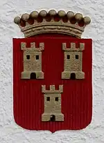 • puis « De gueules à trois tours d'or, ajourées et maçonnées de sable, 2 et 1 »[15]