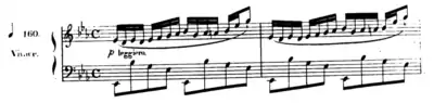 , instaure dans l'énoncé motif, indiqué allegro agitato, un système polyrythmique — la main droite joue des doubles croches tandis que la main gauche joue des sextolets de croches — et déploie une figuration de notes sans cesse en mouvement. Cette section s'achève sur une énergique descente chromatique con forza, suivie d'une cadence de virtuosité tout aussi éclatante.