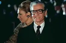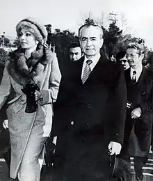 En juillet 1970, le Shah et Farah Pahlavi visitèrent plusieurs États européens, dont la France, la Finlande, la Roumanie, les Pays-Bas et la Belgique. En 1971 le souverain et son épouse réalisèrent une visite au Canada. Le , Farah Pahlavi fut reçue par le président français Georges Pompidou à Paris. Le , le Shah et la Shahbanou se rendirent en URSS pour rencontrer Léonid Ilitch Brejnev, secrétaire général du Parti communiste de l'Union soviétique. De la visite résulta un accord pour construire un gazoduc entre l'Iran et l'Union soviétique, afin d'approvisionner les républiques du sud de l'Union soviétique en gaz iranien. Le , le pape Paul VI, en pleine tournée asiatique, fait escale en Iran et est accueilli par le chah[44] ; la monarchie perse entretenait des relations diplomatiques avec le Saint-Siège depuis le XVIIIe siècle[45], chose rare dans un pays musulman.