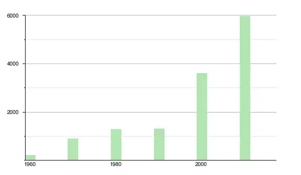 | 1980 | 1 283 | ▲ +41,3 % | |