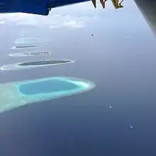 Succession d'atolls et d'îles sur le pourtour de l'atoll Maalhosmadulu aux Maldives