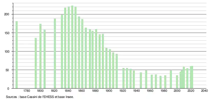 61 hab. (2021 en augmentation de 19,61 % par rapport à 2015)