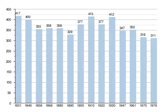 - Sources : INS, Rem. : 1831 jusqu'en 1970 = recensements, 1976 = nombre d'habitants au 31 décembre.