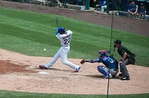 - Atterrir en territoire des fausses balles après avoir rebondit sur le marbre, le frappeur, le receveur, ou le grillage derrière le marbre.