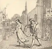 Indication scénique : « Promeneurs de tout genre sortant de la ville. »