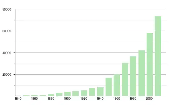 | 1970 | 30 729 | ▲ +51,57 % | |
