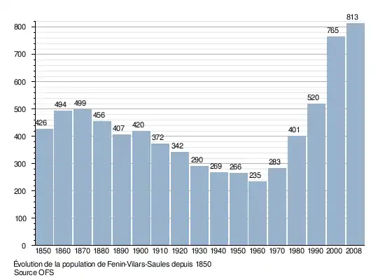 Le graphique suivant résume l'évolution de la population de Fenin-Vilars-Saules entre 1850 et 2008[3] :