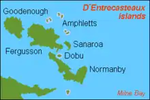 Elle se trouve dans les îles d'Entrecasteaux, à l'est de la Nouvelle-Guinée et dans la mer des Salomon. Elle est séparée de Normanby par le détroit de Dawson et de Goodenough par le détroit de Moresby.