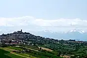 La municipalité se développe presque entièrement sur une zone de collines, caractérisée par un petit espace supérieur plat correspondant à l'arche romaine. Le centre historique, entouré de murs du XVe siècle, est resté identique à celui du XVIIIe siècle, avec quelques rénovations insignifiantes de structures individuelles. La seule intervention urbaine digne d'intérêt est celle réalisée dans la seconde moitié du XIXe siècle XIXe siècle par l'architecte de Fermo, Giovanni Battista Carducci, consistant en la construction d'un tronçon de route avec un accès facile à la place : La Via Roma, avec la perspective typique du bâtiment ornemental appelé Torretta, et la Strada Nuova, sont le résultat d'opérations d'expropriation compliquées et d'interventions incisives sur le tissu urbain de la zone est et sud de la ville.