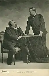 - « Zola et Desmoulin », carte postale, reproduction photomécanique datée 1902, musée de Bretagne.