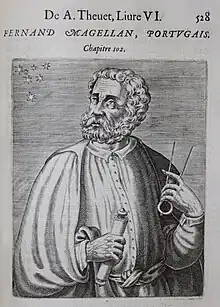 Fernand de Magellan (en portugais Fernão de Magalhães, en castillan Fernando de Magallanes[note 1]), né vers 1480 probablement à Porto[1] et mort le sur l'île de Mactan (actuelles Philippines), est un navigateur et explorateur portugais de l'époque des grandes découvertes, passé au service de la Couronne de Castille, avec le projet d'atteindre les Indes orientales, notamment les îles Moluques en Indonésie, en naviguant vers l'ouest, ce qui était le projet inabouti de Christophe Colomb en 1492 ; Magellan espère donc trouver un passage de l'océan Atlantique à l'océan oriental auquel il donnera le nom d'océan Pacifique.