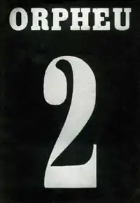 Le , avec son alter ego[43] Mário de Sá-Carneiro et l'argent du père de celui-ci[44], ainsi que d'autres artistes engagés contre les mouvements réactionnaires opposés ou favorables à la Première République, Fernando Pessoa lance la revue Orpheu, référence à l'orphisme[36],[note 13]. Plus qu'une revue moderne et plus qu'un objet d'art, Orpheu se veut un acte créateur et même l'art en acte. Calligrammes, vers libres, détournement de la ponctuation, éclectisme de l'orthographe et des styles, néologismes, archaïsmes, anachronismes[45], ruptures et synchronie du discours, paradoxes amphigouriques et antithèses ironiques[46], ekphrâsis[47] à satiété, interjections[cf 7], pornographie[48] et allusions homosexuelles[49], outrances déclenchent le fracas dans toute la presse lisboète et jusqu'en province[50]. L'avant-gardisme provocateur et suicidaire de la revue, la dénonciation d'une sexualité bourgeoise et hypocrite[51],[cf 8], le défi lancé à une littérature compassée et conformiste, le mépris affiché pour une critique étouffante choquent tant celle-ci que le public et révèlent au sein de la rédaction des clivages politiques envenimés par une diatribe[note 14] de Fernando Pessoa contre le chef du Parti Républicain, Afonso Costa. C'est à cette occasion qu'il « tue » le maître sensationniste[8] Alberto Caeiro. Malgré les maquettes qu'il s'obstinera à concevoir, la revue ne survit pas à l'opposition du pseudo[note 15] éditeur, António Ferro (pt) et au suicide dandy[52],[note 16] de Mário de Sá-Carneiro. Elle ne comptera que deux numéros (premier et deuxième trimestre 1915 ; le troisième numéro imprimé ne fut pas diffusé).