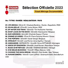 Le Festival internationa de Cinéma de Kinshasa (FICKIN) est une manifestation culturelle organisée par l'association Ciné na Biso qui a pour mission de mettre en lumière la création cinématographique locale et internationale par le biais des projections de films, ateliers de formations, master class, rencontres professionnelles et réseautages.