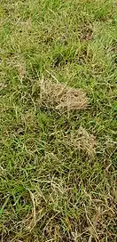 Elle ne se dégrade plus correctement, rend difficile l'infiltration de l'eau dans le sous-sol (sensibilité de la pelouse à la sécheresse) et maintient l'humidité en partie superficielle (favorise le développement de mousses). Elle handicape le développement du gazon[1].