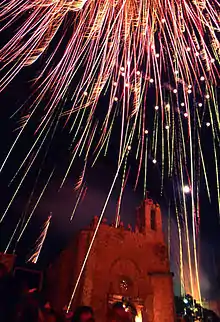 Au Mexique, les feux d'artifice, en particulier les grosses roquettes appelées « cohetones» (fusées), sont une animation de base des fêtes patronales[8]. Les fêtes religieuses, même dans les plus petites villes, ont des feux d'artifice qui peuvent inclure des images du saint patron sur un cadre décrit dans des pièces pyrotechniques. Cela est particulièrement vrai pour les grands lieux de pèlerinage tels que celui de Notre-Dame de San Juan de los Lagos (en)[2]. Le jour le plus important des ventes de feux d'artifice est le jour de l'indépendance du Mexique. Lors de la célébration du Bicentenaire de l'indépendance du Mexique (es) sur le Zocalo ou la place principale de la ville de Mexico, plus de 2 400 obus composent le spectacle multimédia qui commence par une reconstitution de l’appel des troupes lancé par le père Miguel Hidalgo à 23 h le [12].
