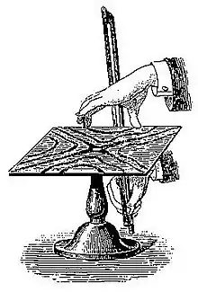 Pourtant, si ces figures portent le nom d'Ernst Chladni, c'est par la publication par ce dernier en du traité Entdeckungen über die Theorie des Klanges[N 6], qui popularise le phénomène dans la communauté scientifique en Europe. Chladni utilisait des plaques de métal, sur lesquelles il faisait vibrer du sable avec un archet.