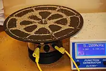 Une plaque horizontale est fixée de manière rigide sur un support central. Elle peut être de taille, de forme et d'épaisseur variée. Historiquement, les plaques utilisées par Chladni étaient en métal, mais de nombreux matériaux[N 2] permettent la formation de motifs nets et nombreux.