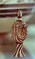 | Figurine féminine en phi portant un enfant. | Figure féminine en terre cuite peinte. Hauteur : 12 cm |