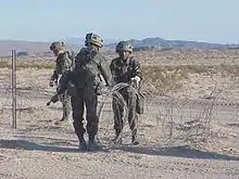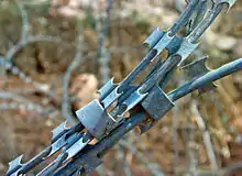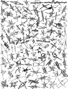 Le fil barbelé a été beaucoup utilisé sur les champs de bataille. Déroulé et déposé simplement sur le terrain, il freine la progression des soldats, qui peuvent même s'y emmêler. Dans ce cas, le fil est composé de lames coupantes.