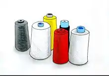 - Fil métallique (ou en rayonne) : fil synthétique entouré de fibres métalliques, il est généralement utilisé pour les coutures décoratives.