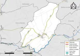 terres arables (64,5 %), forêts (32,2 %), zones urbanisées (3,4 %)[13]. L'évolution de l’occupation des sols de la commune et de ses infrastructures peut être observée sur les différentes représentations cartographiques du territoire : la carte de Cassini (XVIIIe siècle), la carte d'état-major (1820-1866) et les cartes ou photos aériennes de l'IGN pour la période actuelle (1950 à aujourd'hui)[Carte 1].