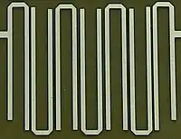 Le filtre en épingle à cheveux est une autre structure qui utilise des lignes couplées en parallèle. Dans ce cas, chaque paire de lignes couplées en parallèle est reliée à la paire suivante par un lien court. Les formes en "U" ainsi formées sont à l'origine du nom de filtre en épingle à cheveux. Dans certaines conceptions, la liaison peut être plus longue, donnant une épingle à cheveux large avec une action de transformateur d'impédance λ/4 entre les sections[58].