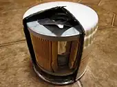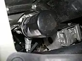 Le « filtre à huile » comprend la membrane filtrante proprement dite en fibres, son enveloppe métallique protectrice et le joint d'étanchéité en élastomère résistant[alpha 2]. Le filtre à huile est alimenté grâce à la pompe à huile. Il retient les particules, indésirables, d'une certaine taille, présentes dans l'huile moteur, afin de réduire l'usure. Certains filtres à huile sont équipés d'un bypass, indispensable en cas de colmatage, dû par exemple à un manque d'entretien.