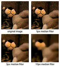 En revanche la composition de plusieurs filtres médians ne correspond pas à un filtre médian [citation nécessaire].