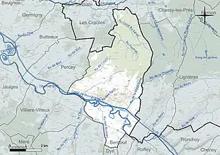 Les communes limitrophes sont Chessy-les-Prés, Les Croûtes, Marolles-sous-Lignières, Percey, Dyé, Bernouil, Carisey et Villiers-Vineux.