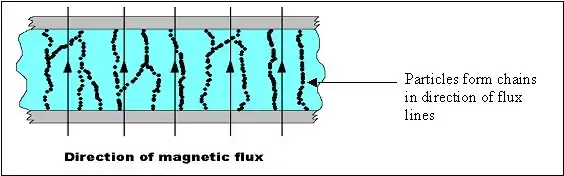 Au repos, les particules sont suspendues à l'intérieur du fluide porteur et distribuées de façon aléatoire en suspension. Lorsqu'un champ magnétique ou électrique est appliqué, les particules microscopiques s'alignent le long des lignes de flux magnétique ou de flux électrique. Ceci augmente la viscosité du fluide. Les images suivantes montrent le comportent d'un fluide magnétorhéologique avant et après l'application d'un champ magnétique.